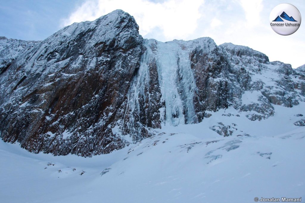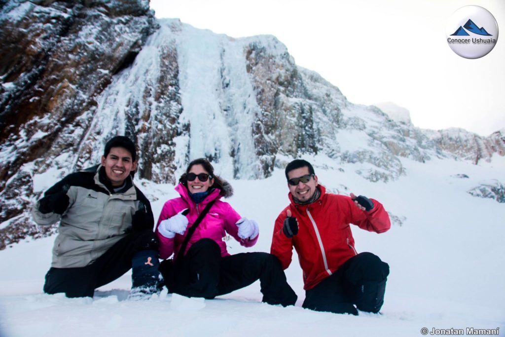 Volviendo al mundo de las caminatas casi terminando el mes de Agosto y con mucha nieve 🙂 (por suerte, jeje), pudimos realizar esta increíble caminata junto a Cristian y Paula (bienvenida a Ushuaia) a la famosa cascada congelada del cerro Alvear. El día buenísimo, un poco de nieve al principio pero el resto del día bastante agradable, hasta salio el sol. Ese mismo día también se realizaba el evento de la Marcha Blanca en el centro invernal Tierra Mayor.