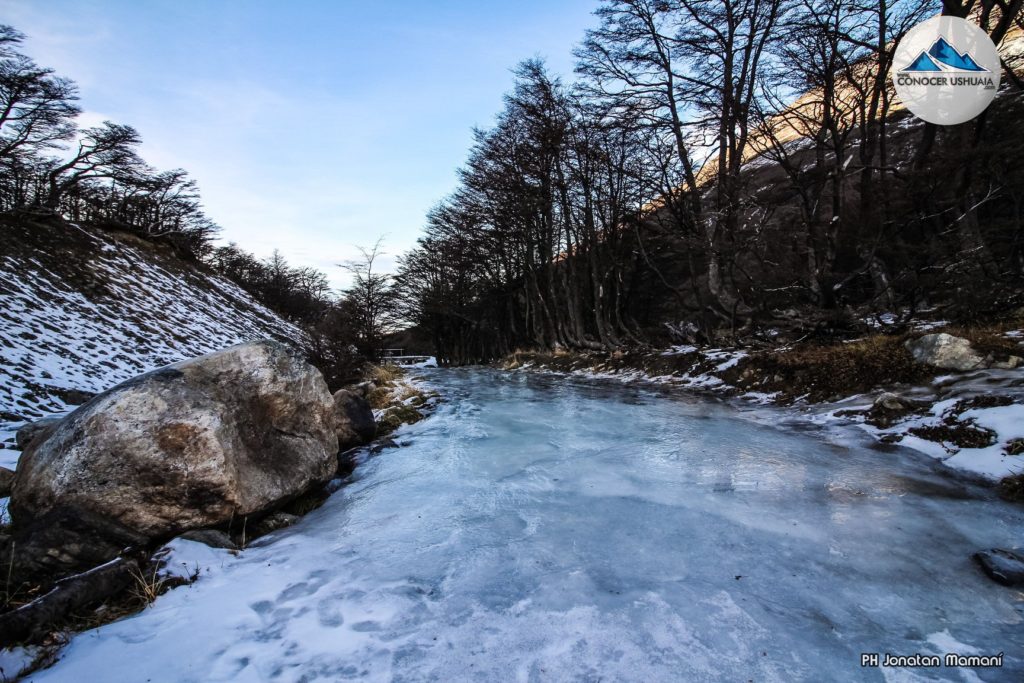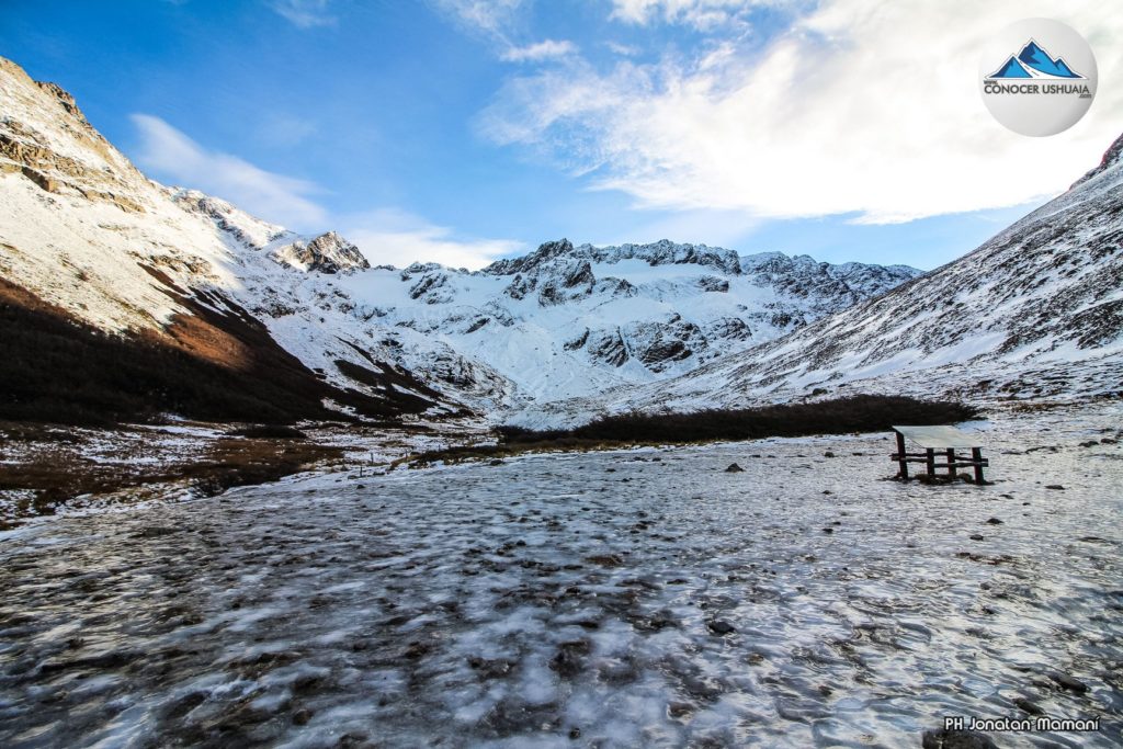 Últimos días antes de la llegada oficial de la nieve (esperemos) con mucho hielo en los senderos con un poco de altura, tal es el caso del mirador al Glaciar Martial. En un día fantástico aprovechamos este gran lugar muy cercano a nuestra ciudad.