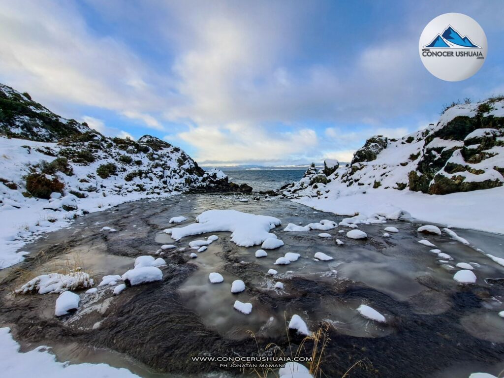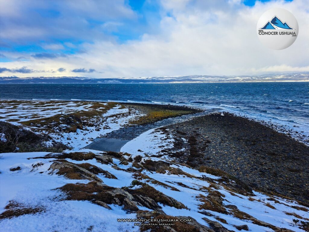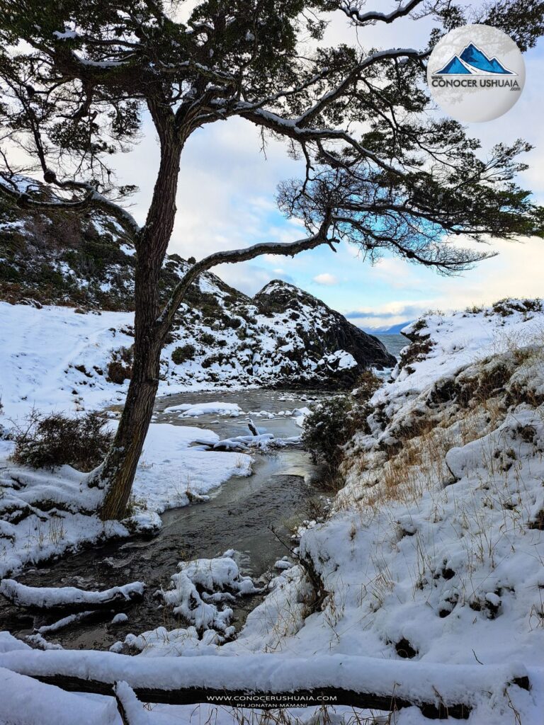 Preparando las próximas competencias, en esta oportunidad aprovechamos la nevada que cayó en la ciudad y las montañas cercanas para recorrer nuevamente la zona del Río Encajonado y la Estancia Túnel. Es un circuito costero que, si bien la senda estaba bastante transitable con nieve, por debajo había mucho hielo que producía resbalones continuos. En esta época siempre se recomienda el uso de crampones en todos los senderos fueguinos.